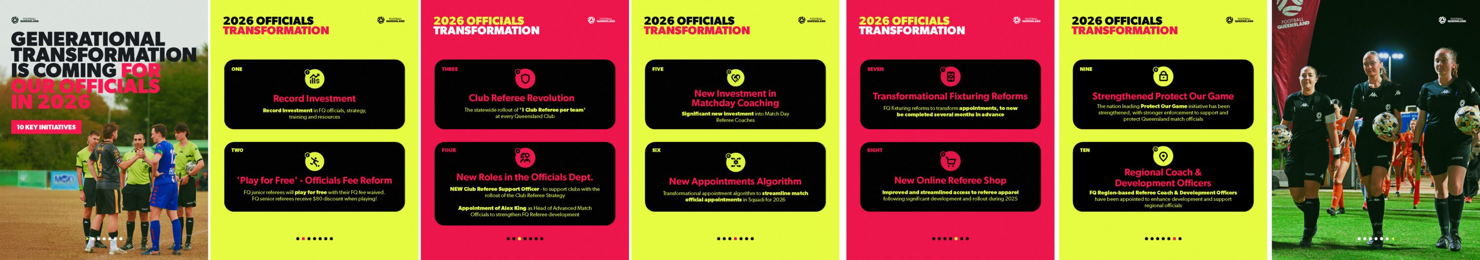 “In a landmark announcement, the ‘Play for Free’ fee reforms are set to deliver benefits to participants in every part of the state, where FQ match officials will receive free or heavily discounted access to Football Queensland competitions in 2026 as part of the wide-ranging suite of referee initiatives.
